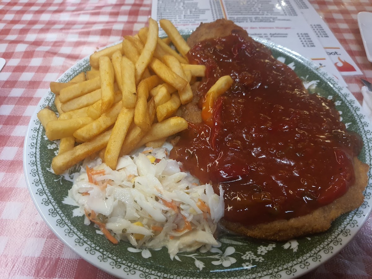 The schnitzel with the sauce and potato salad tasted amazing, really typical German food. You can actually feel the German culture just by being there. The place has such a nice and authentic atmosphere, and the people were super friendly. Definitely worth a visit if you want to experience real German food and vibes.